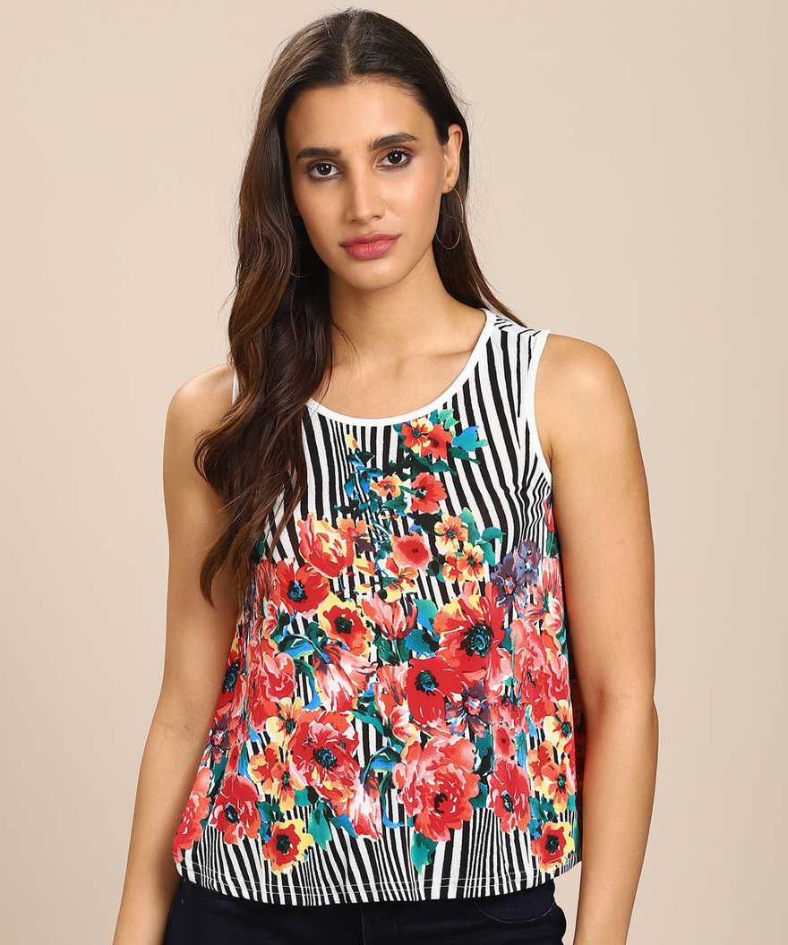 Casual Sleeveless Printed Women Multicolor Top