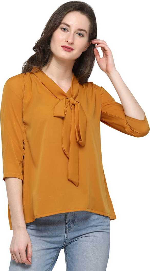 Casual 3/4 Sleeve Solid Women Yellow Top