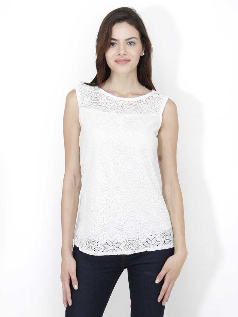Casual Sleeveless Solid, Embroidered Women White Top