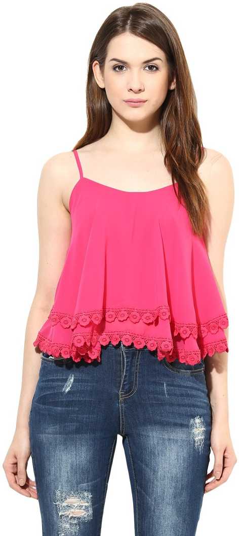Party Sleeveless Solid Women Pink Top