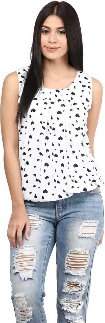 Casual Sleeveless Printed Women White Top