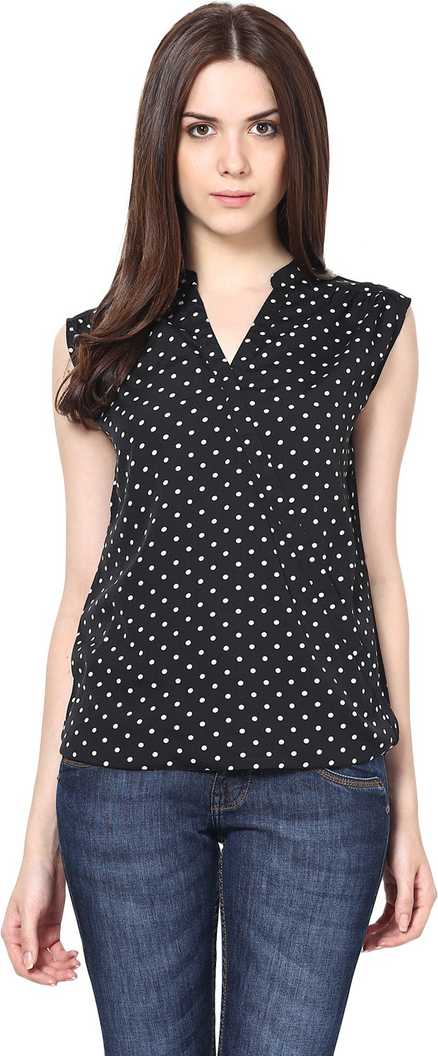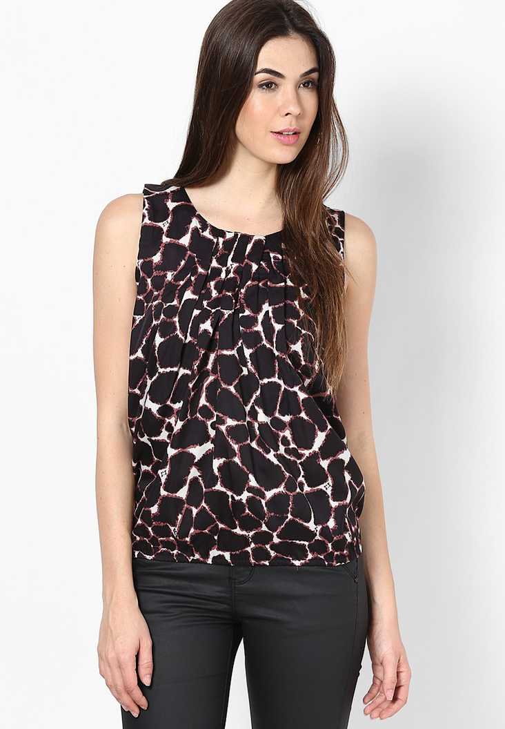 Casual Sleeveless Printed Women Black Top
