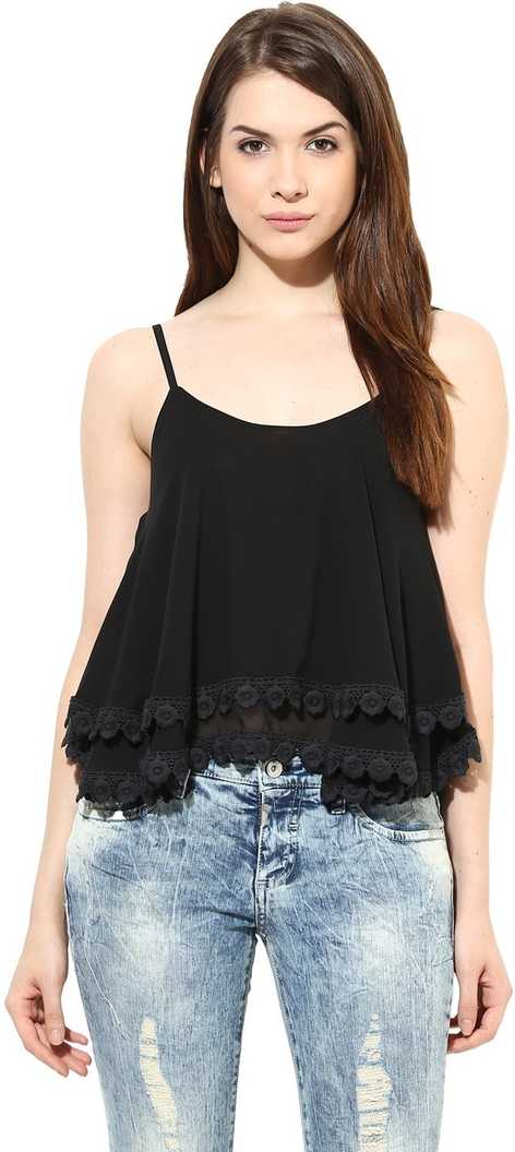 Party Sleeveless Solid Women Black Top