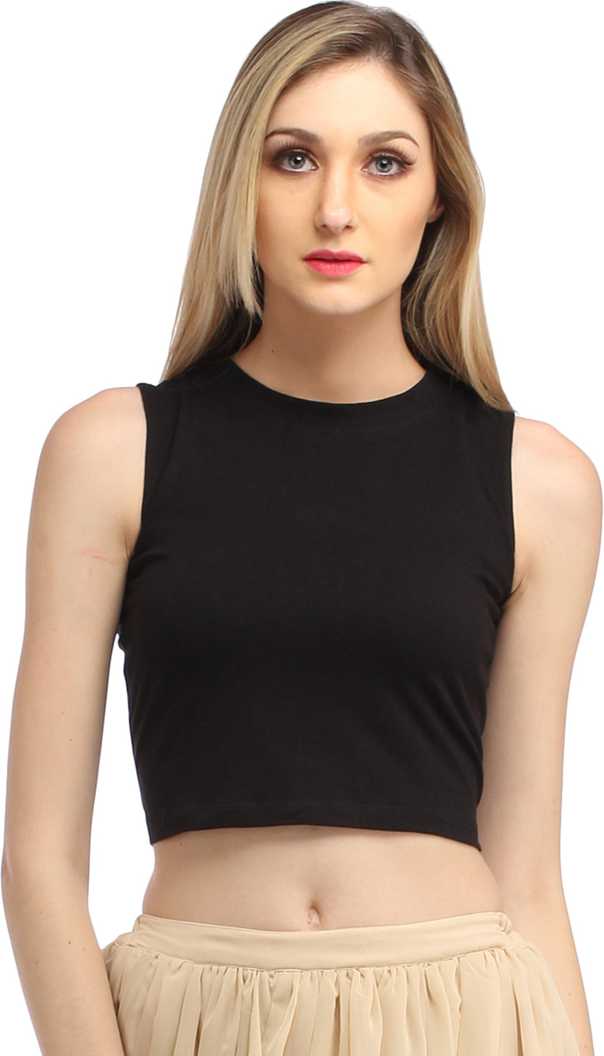 Casual Sleeveless Solid Women Black Top