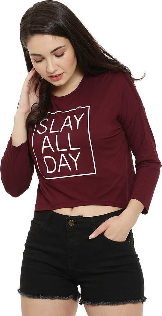 Casual 3/4 Sleeve Printed Women Maroon Top