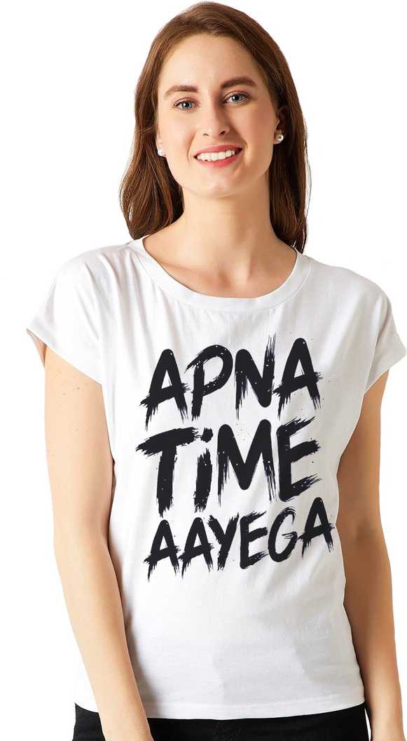 Lime Typography, Printed Women Round Neck White T-Shirt