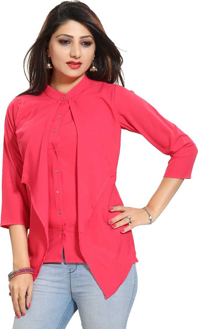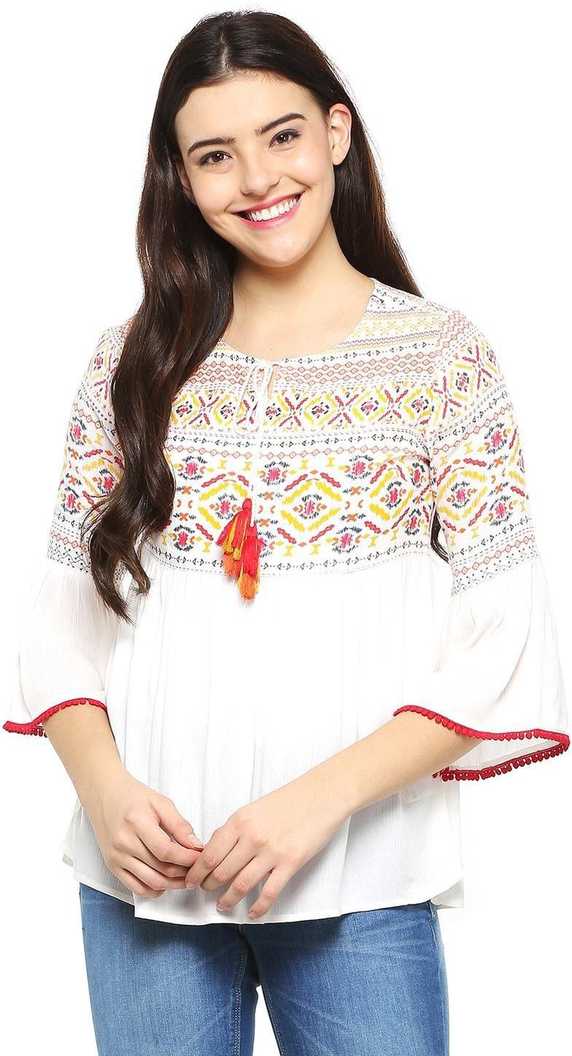 Casual 3/4 Sleeve Solid Women White, Orange Top