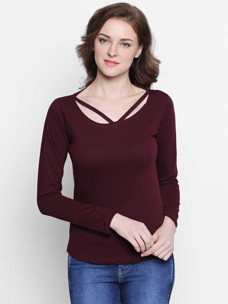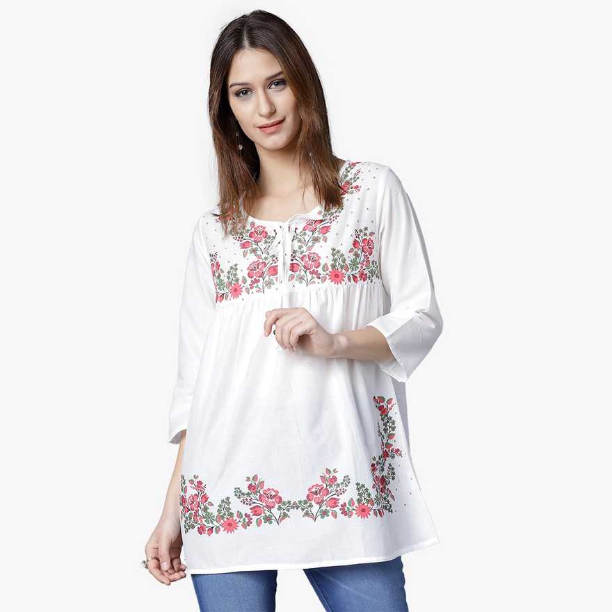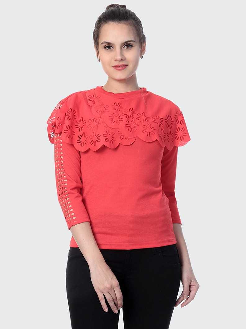 Casual 3/4 Sleeve Embroidered Women Red Top