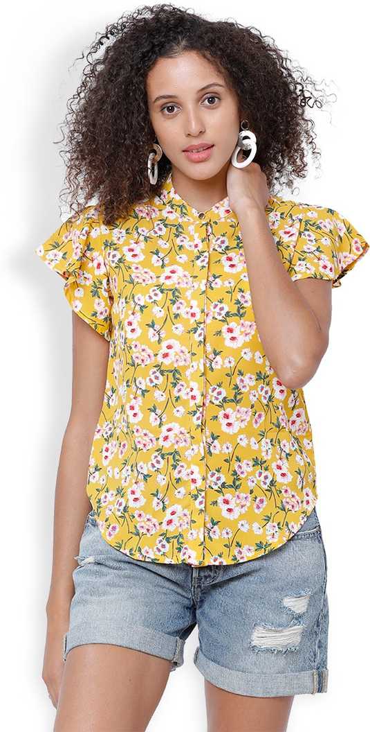 Casual 3/4 Sleeve Embroidered, Embellished Women Yellow Top