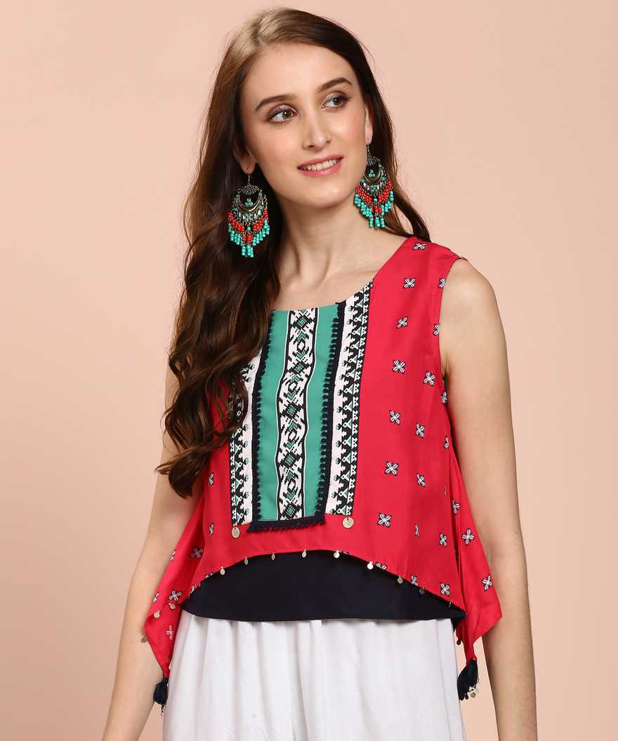 Casual Sleeveless Printed Women Blue, Red, Black Top