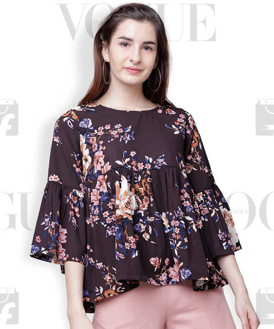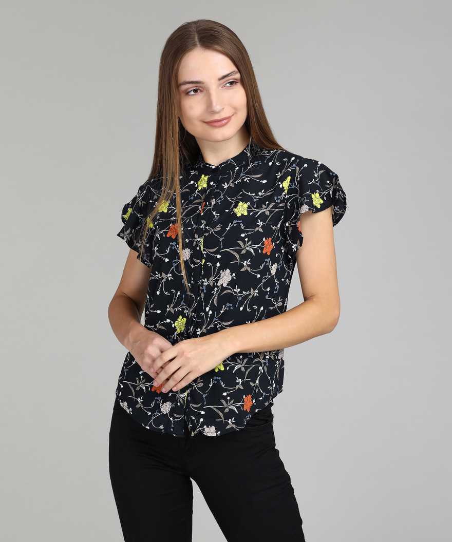 Casual Butterfly Sleeve Printed Women Dark Blue Top