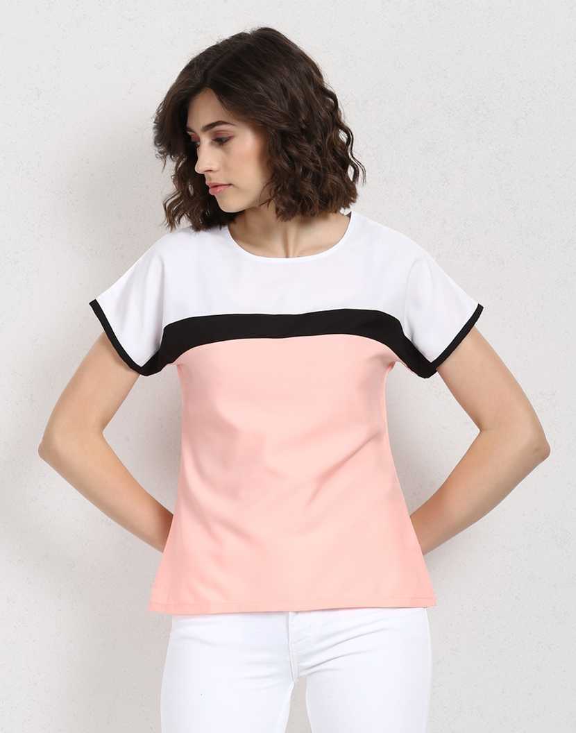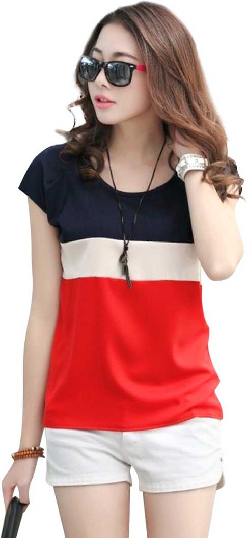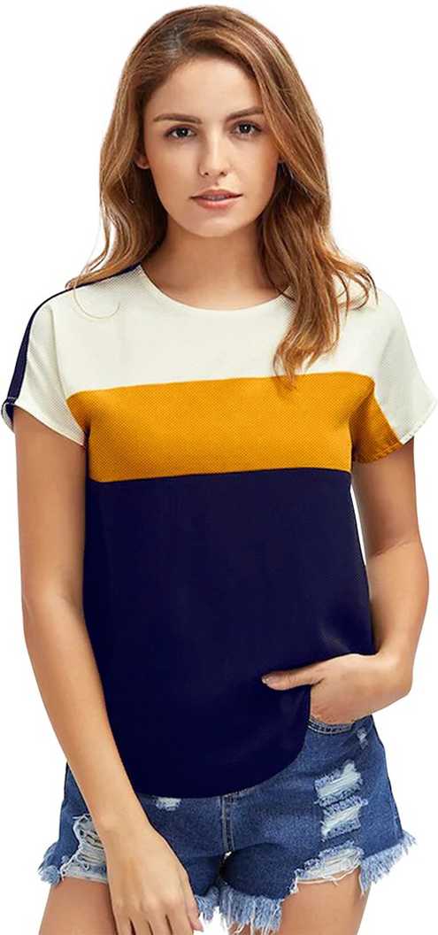 Casual Half Sleeve Color Blocked Women's Multicolor Top