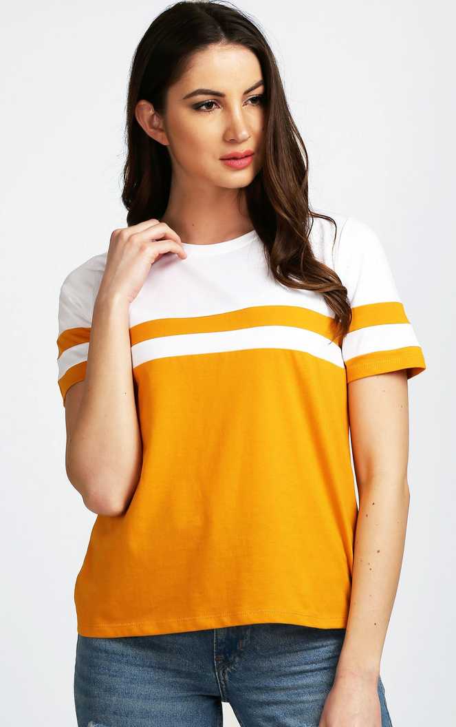 Casual Half Sleeve Striped Women's Yellow, White Top