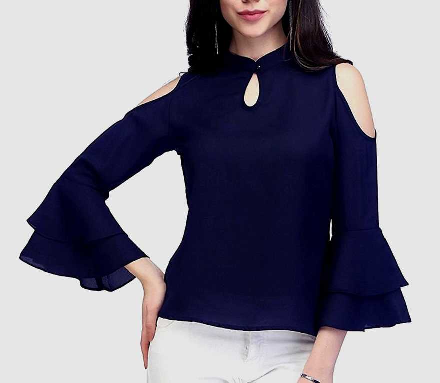 Casual Bell Sleeve Solid Women's Dark Blue Top