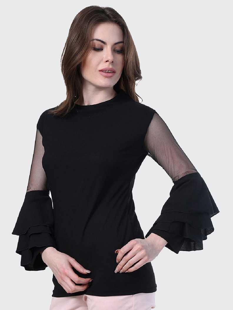 Casual Full Sleeve Solid Women Black Top