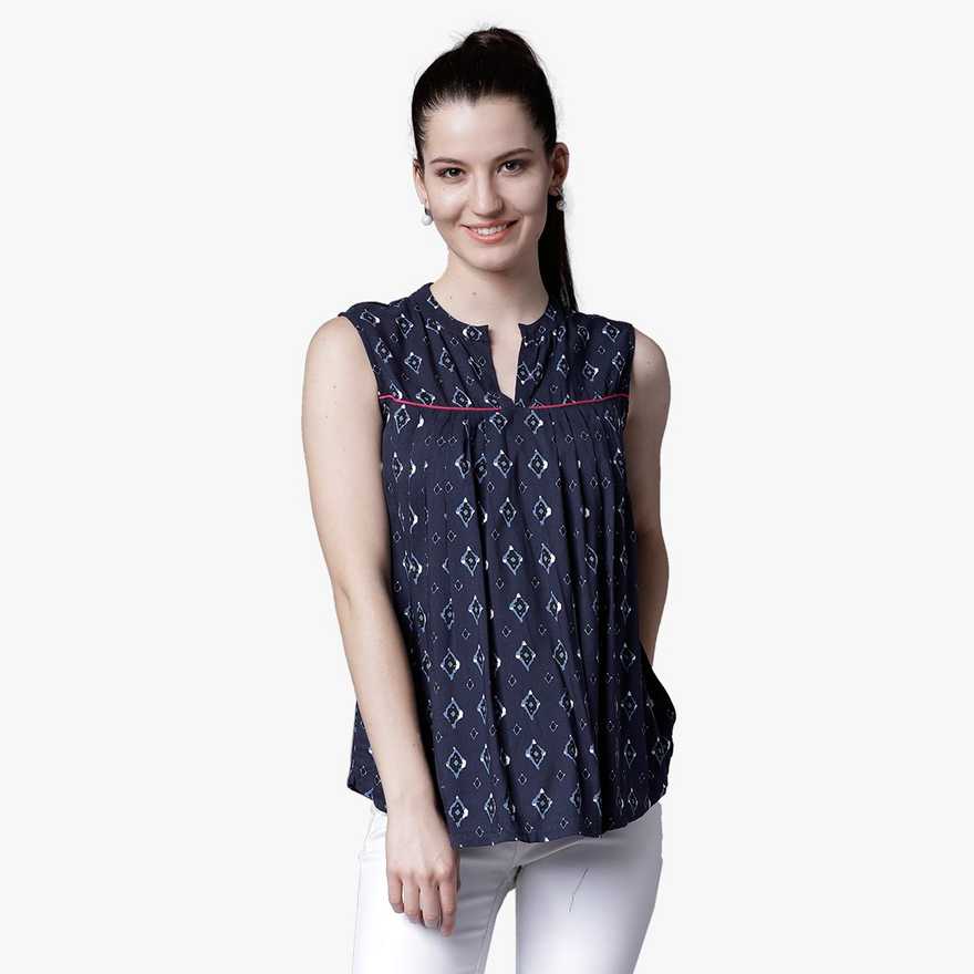 Casual Sleeveless Printed Women Blue Top