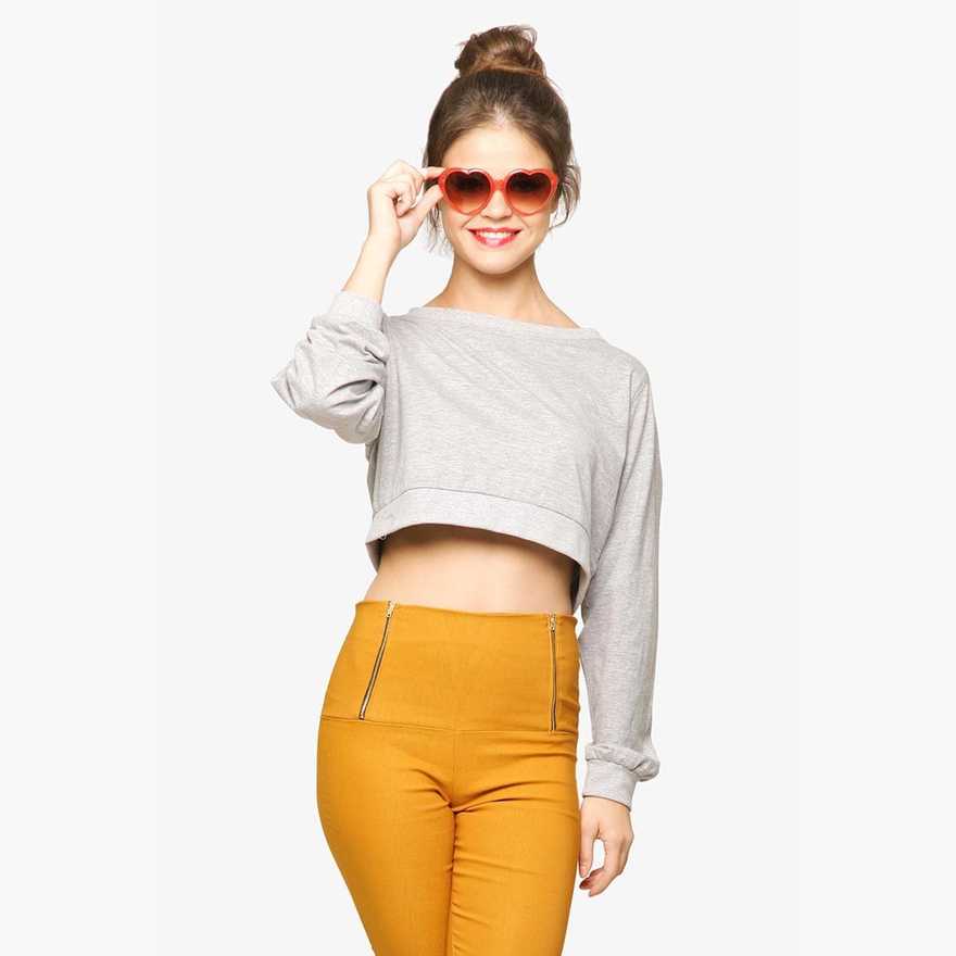Casual Full Sleeve Solid Women Grey Top