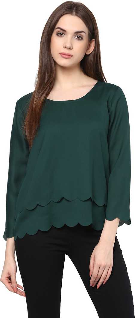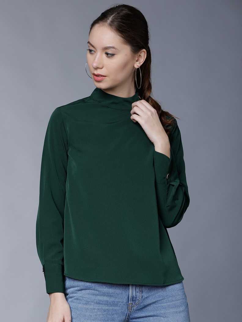 Casual Full Sleeve Solid Women Dark Green Top