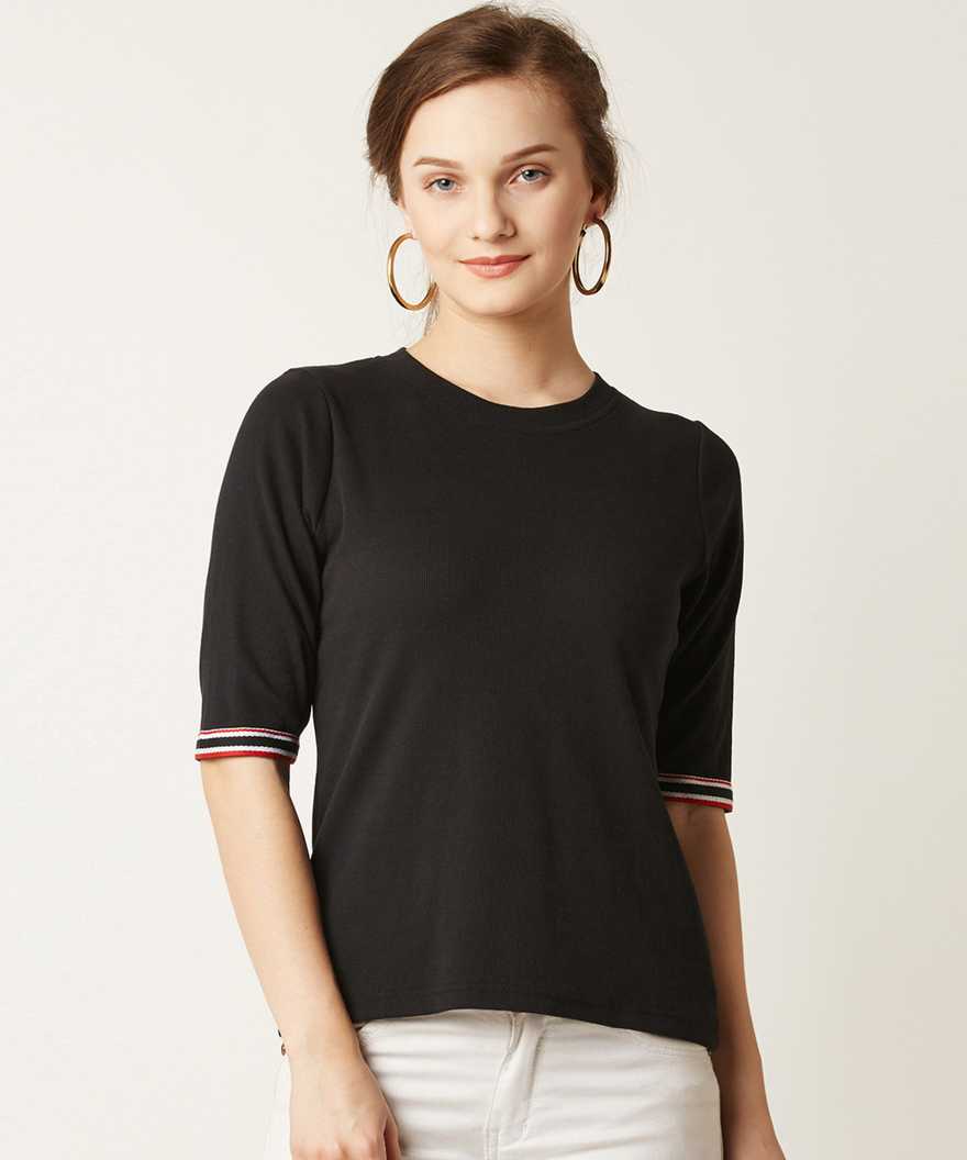 Casual Regular Sleeve Solid Women Black Top
