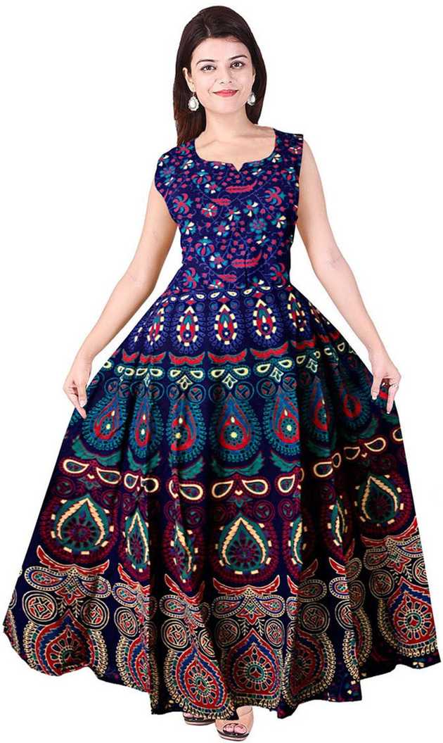 Women Maxi Blue, Green Dress