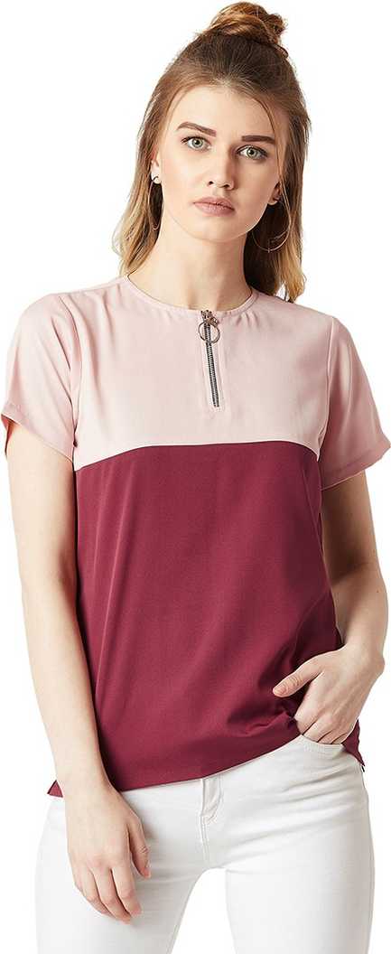 Casual Short Sleeve Solid Women Pink, Maroon Top
