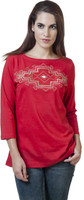 Clo Clu Solid Women's Round Neck Red T-Shirt