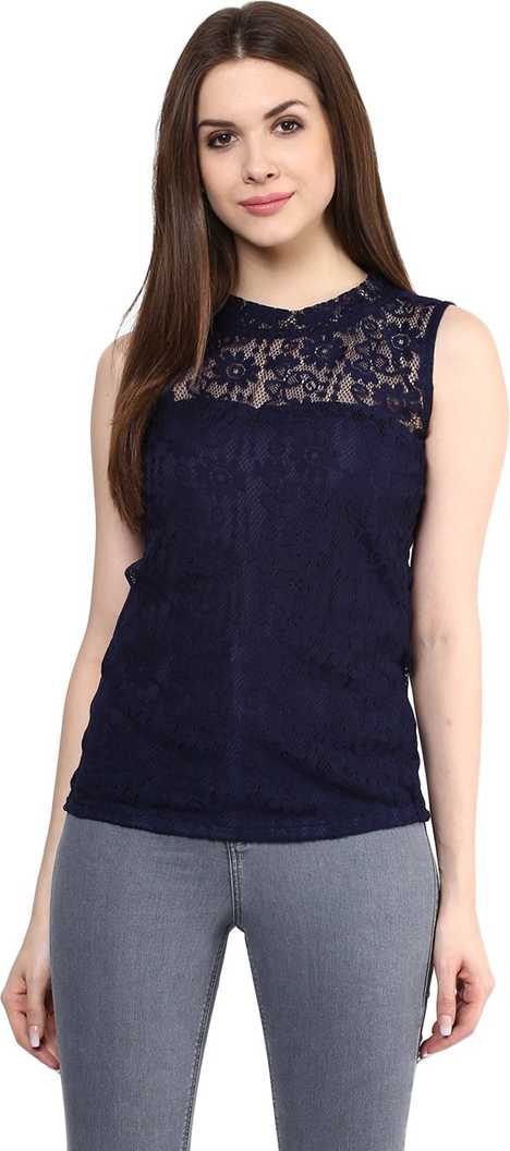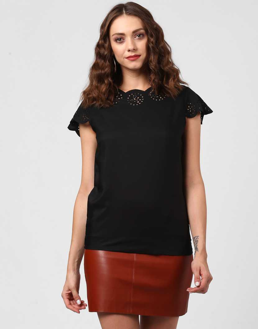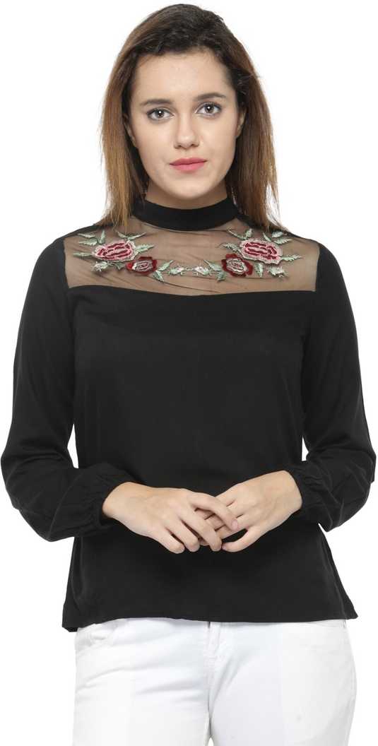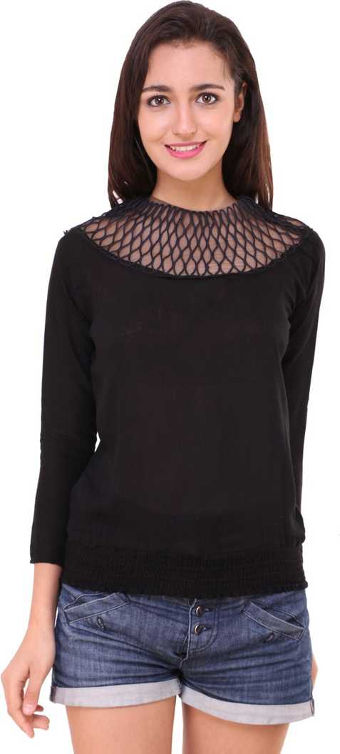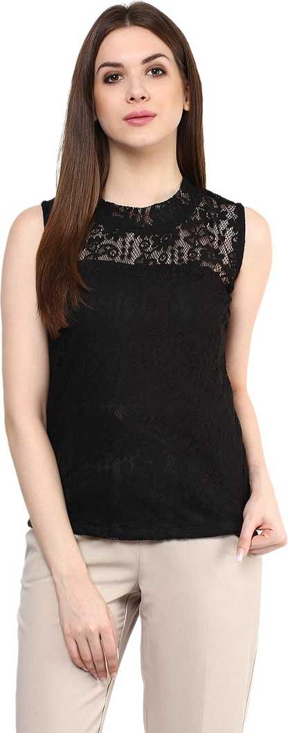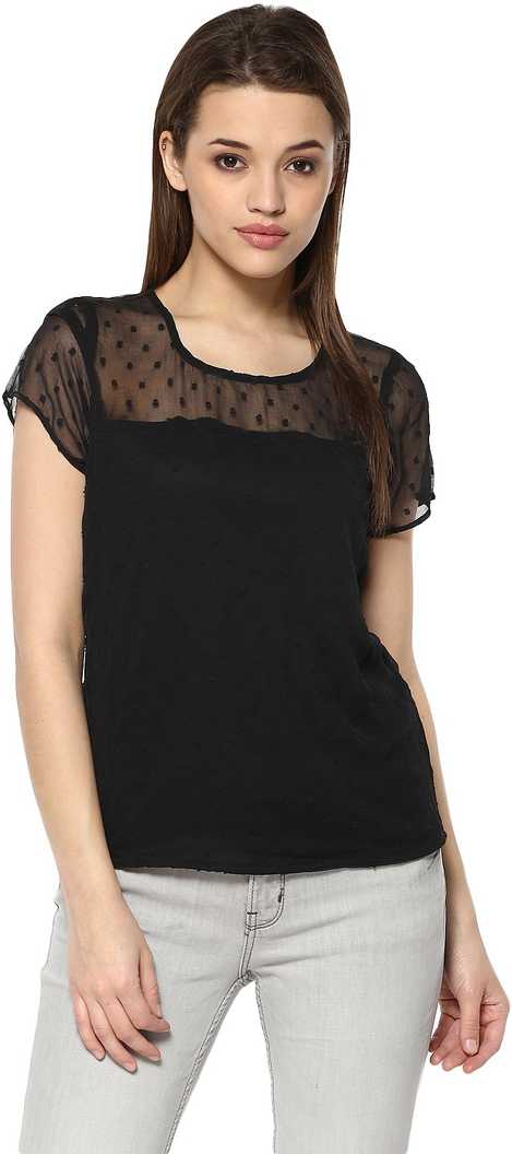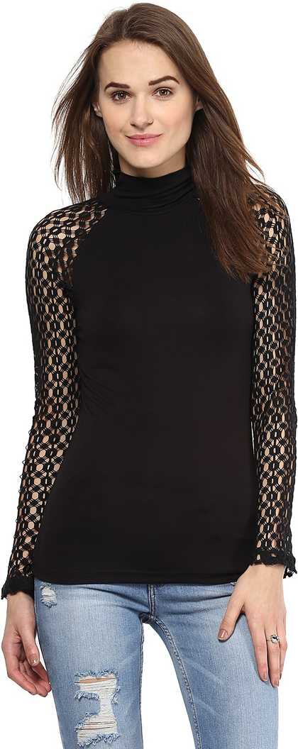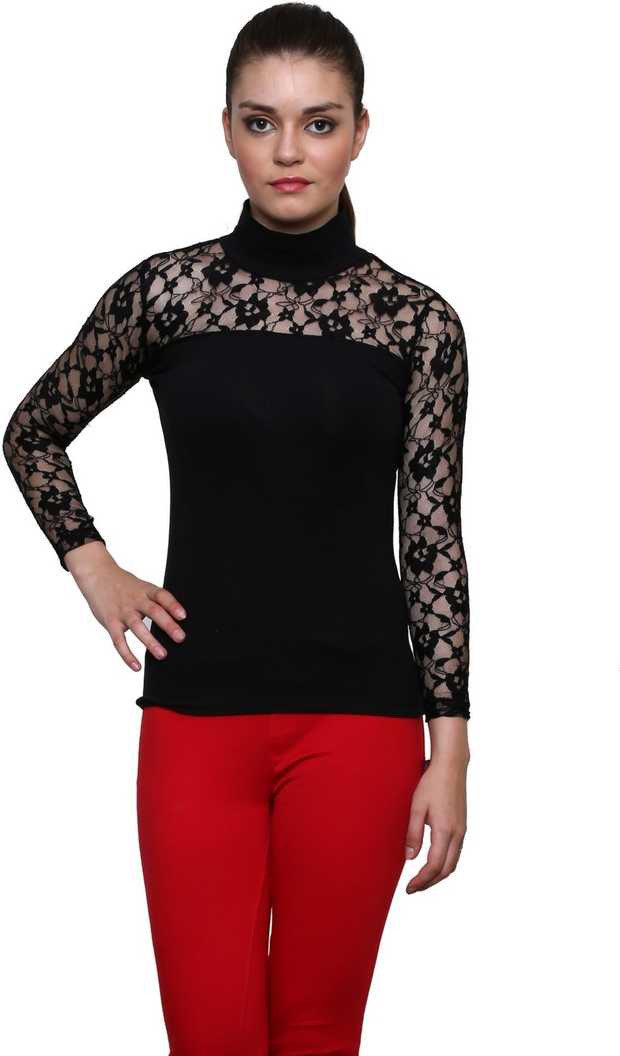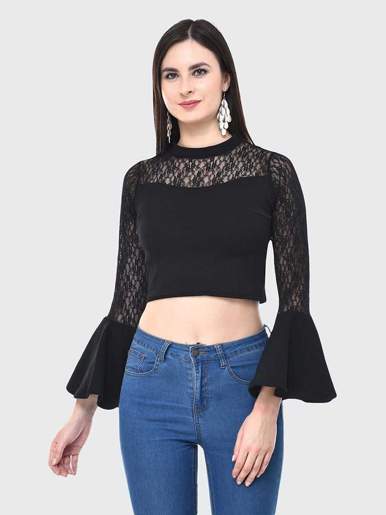 Casual Bell Sleeve Solid, Lace Women Black Top