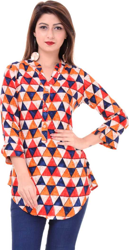Casual Regular Sleeve Geometric Print Women Multicolor Top