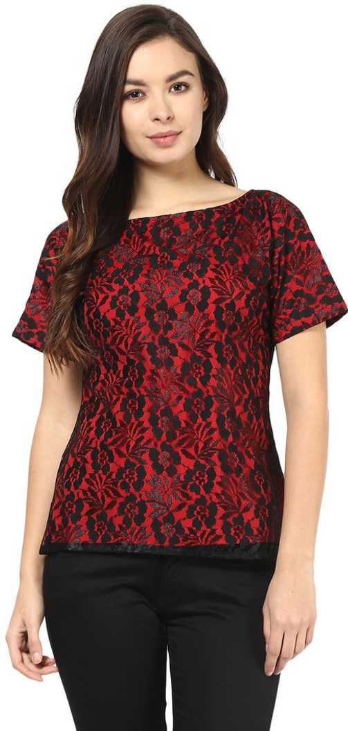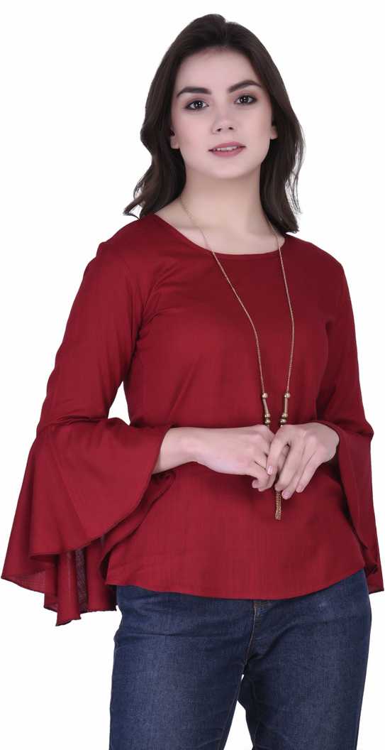 Casual 3/4 Sleeve Solid Women Maroon Top