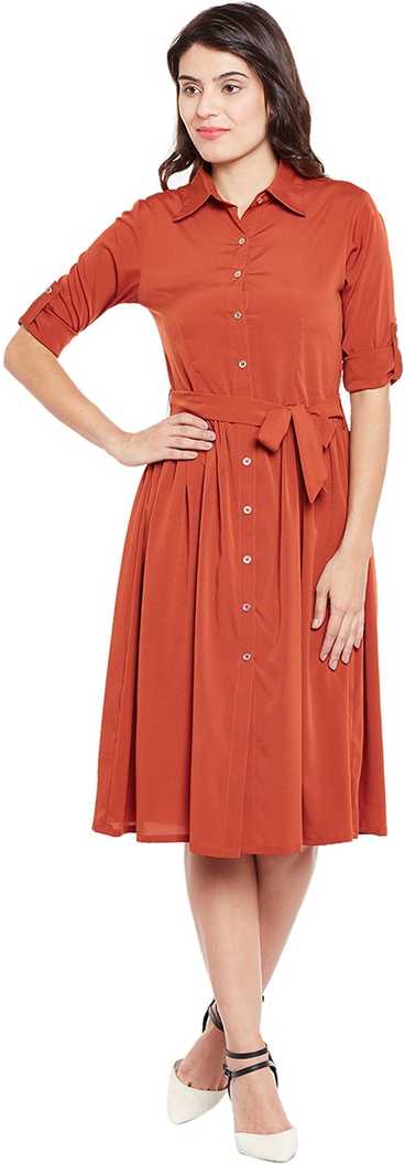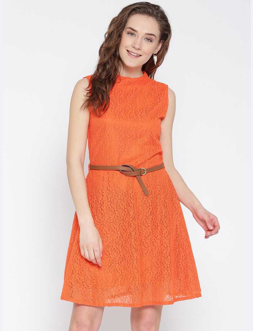 Women Fit and Flare Orange Dress