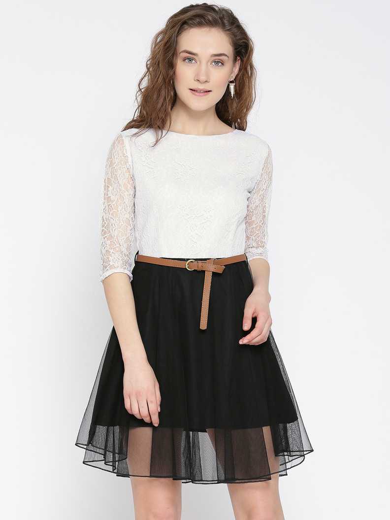Women Fit and Flare White, Black Dress