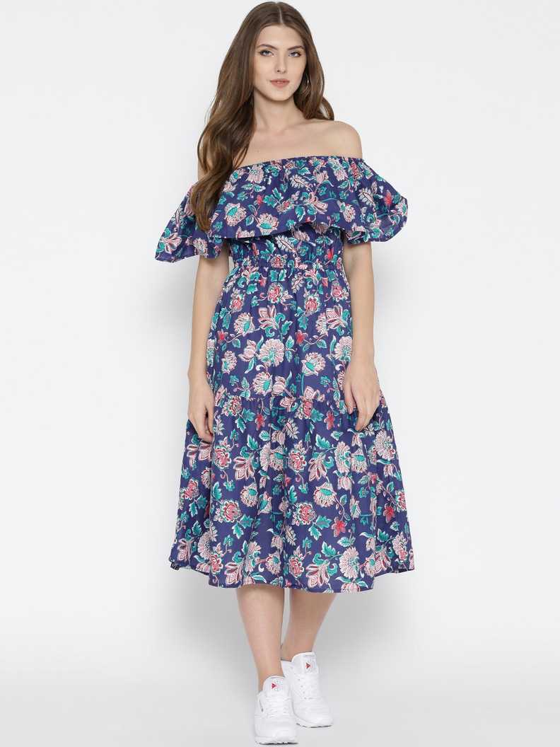 Women Fit and Flare Dark Blue Dress