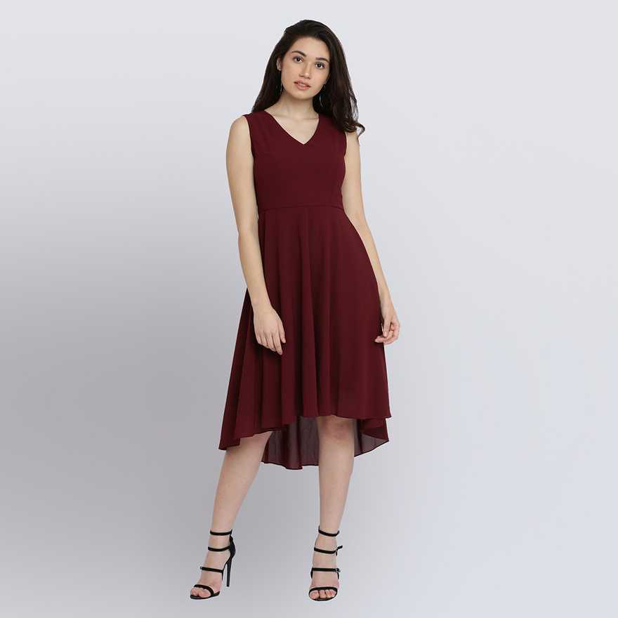 Women Skater Maroon Dress