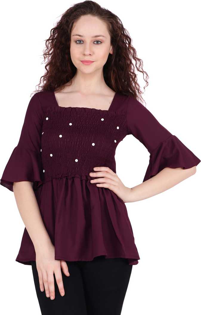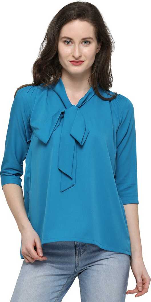 Casual 3/4 Sleeve Solid Women Blue, Light Blue Top