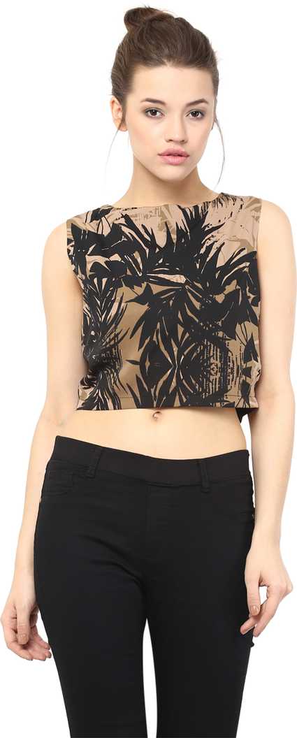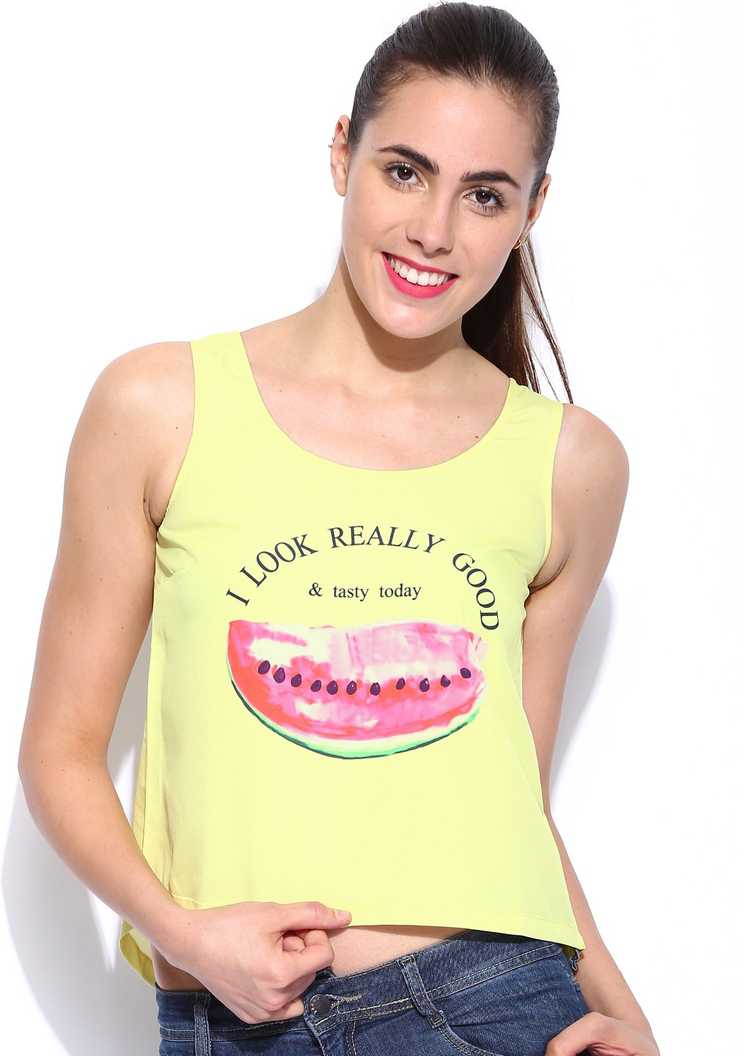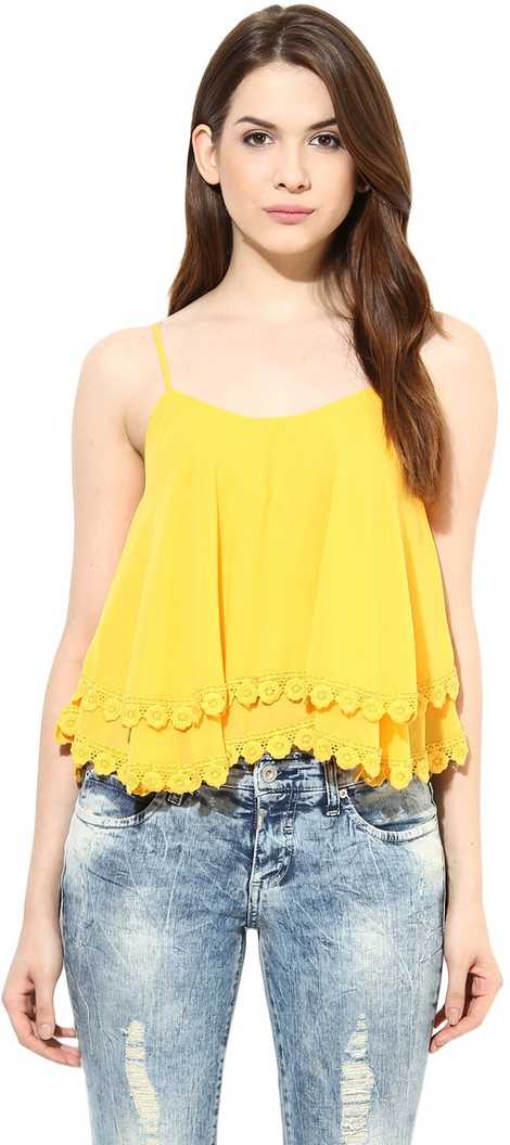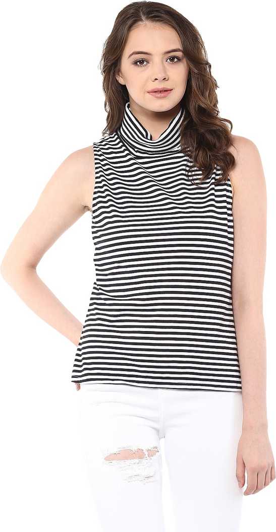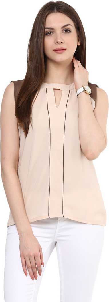 Casual Sleeveless Striped Women Beige, Yellow Top