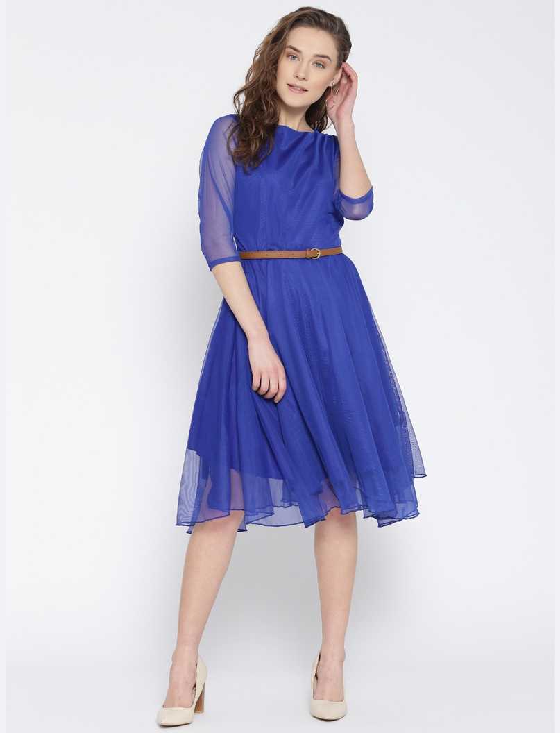 Women Fit and Flare Blue Dress
