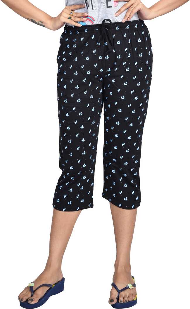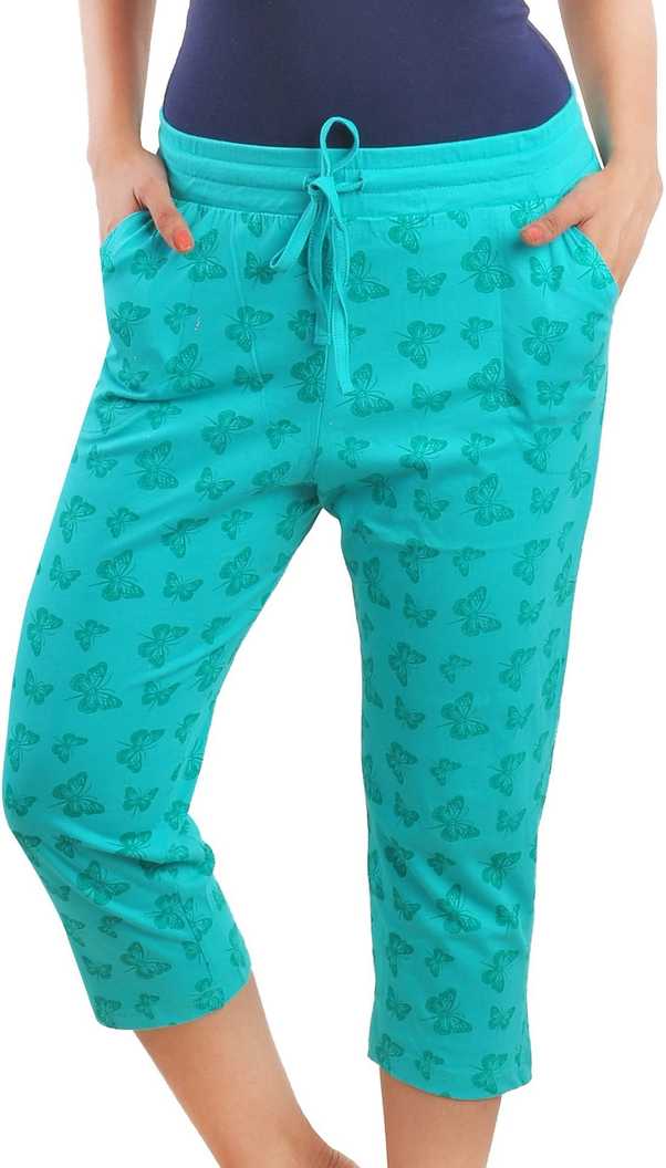 Cotton Printed Capri Women Green Capri