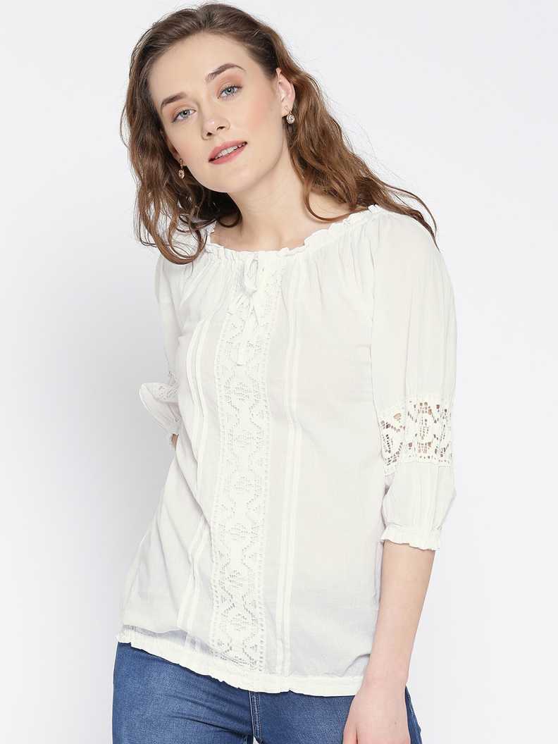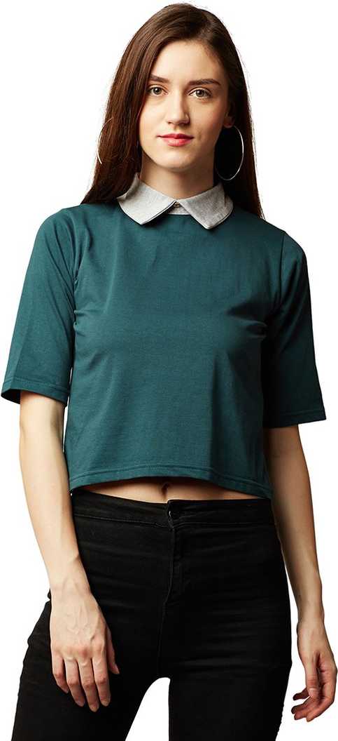 Casual 3/4 Sleeve Printed Women Dark Blue Top