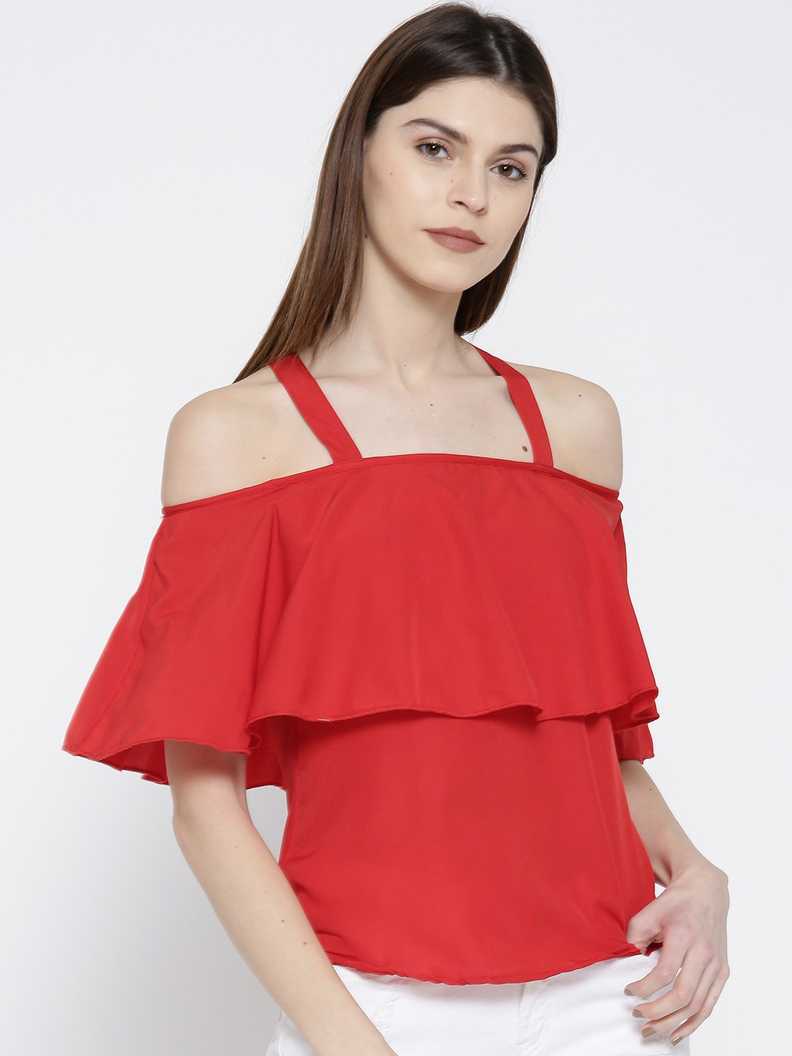 Casual Half Sleeve Solid Women Red Top