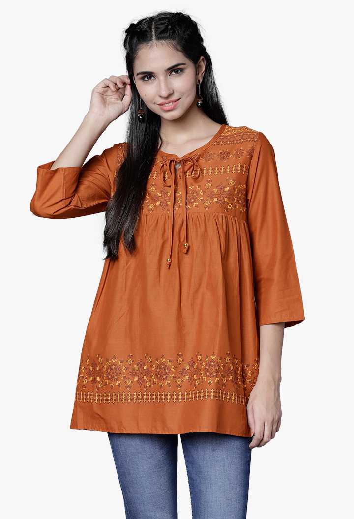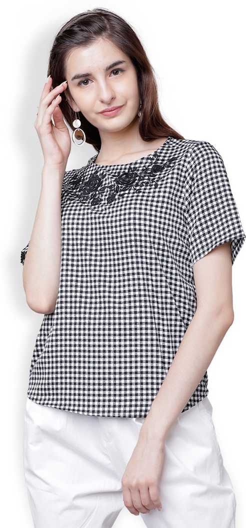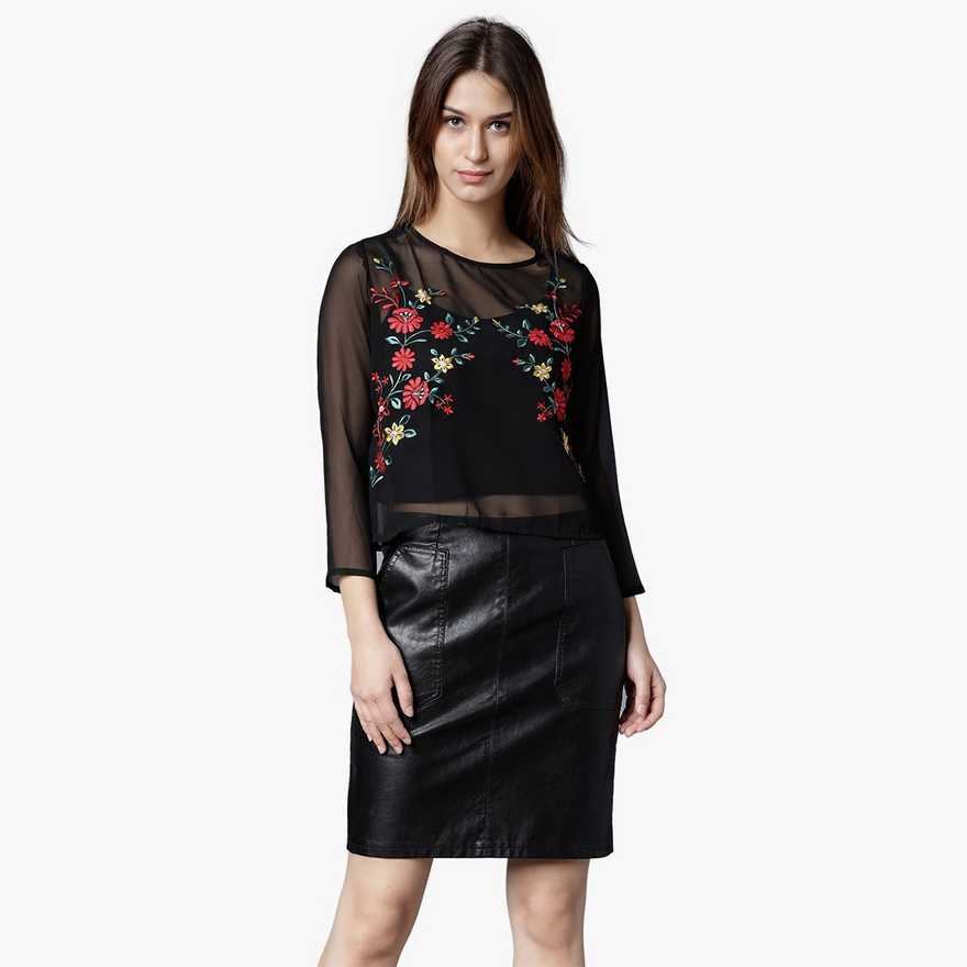 Casual Full Sleeve Embroidered Women Black Top