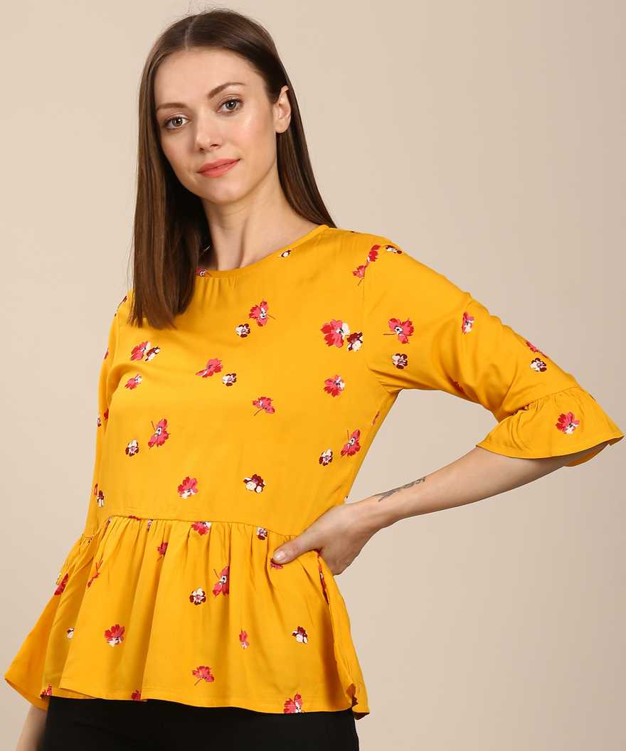 Casual Bell Sleeve Printed Women Yellow Top