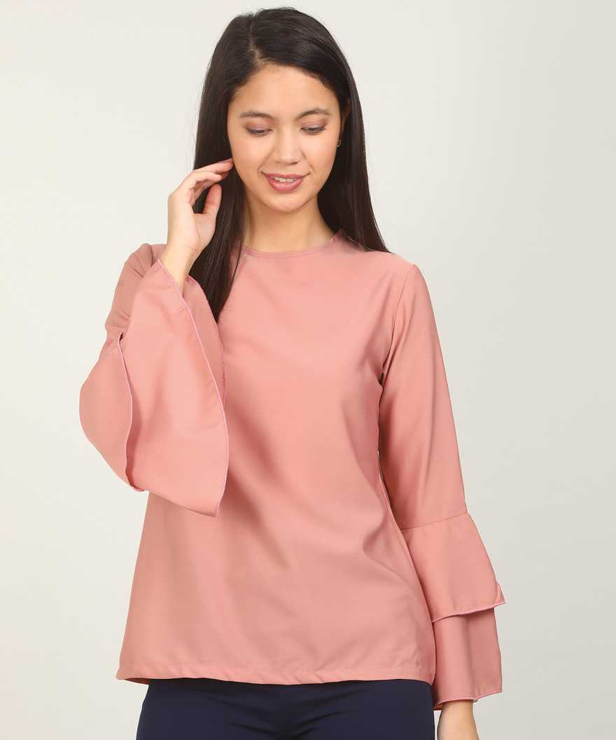 Casual Layered Sleeve Solid Women Pink Top
