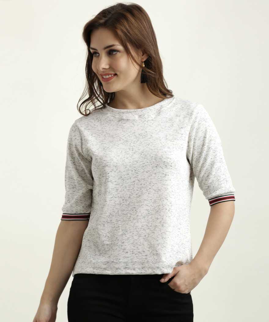Casual Half Sleeve Heathered Women White Top