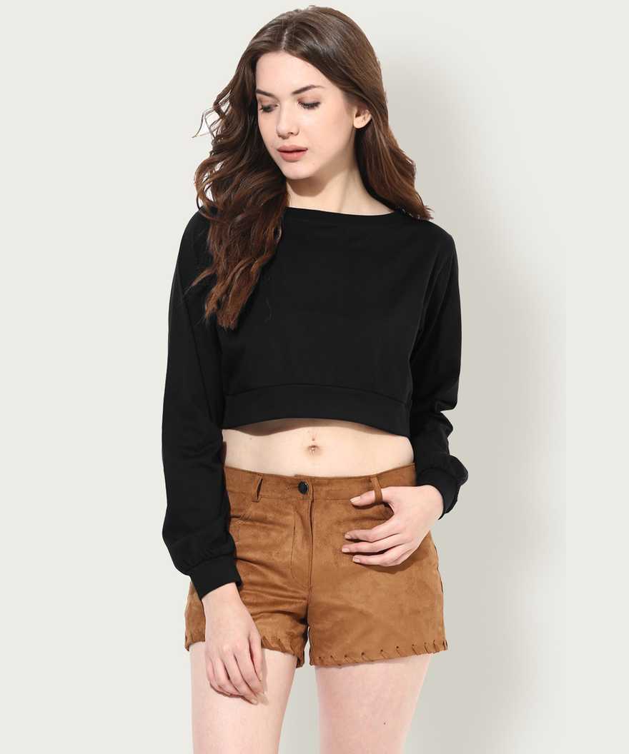 Casual Full Sleeve Solid Women Black Top