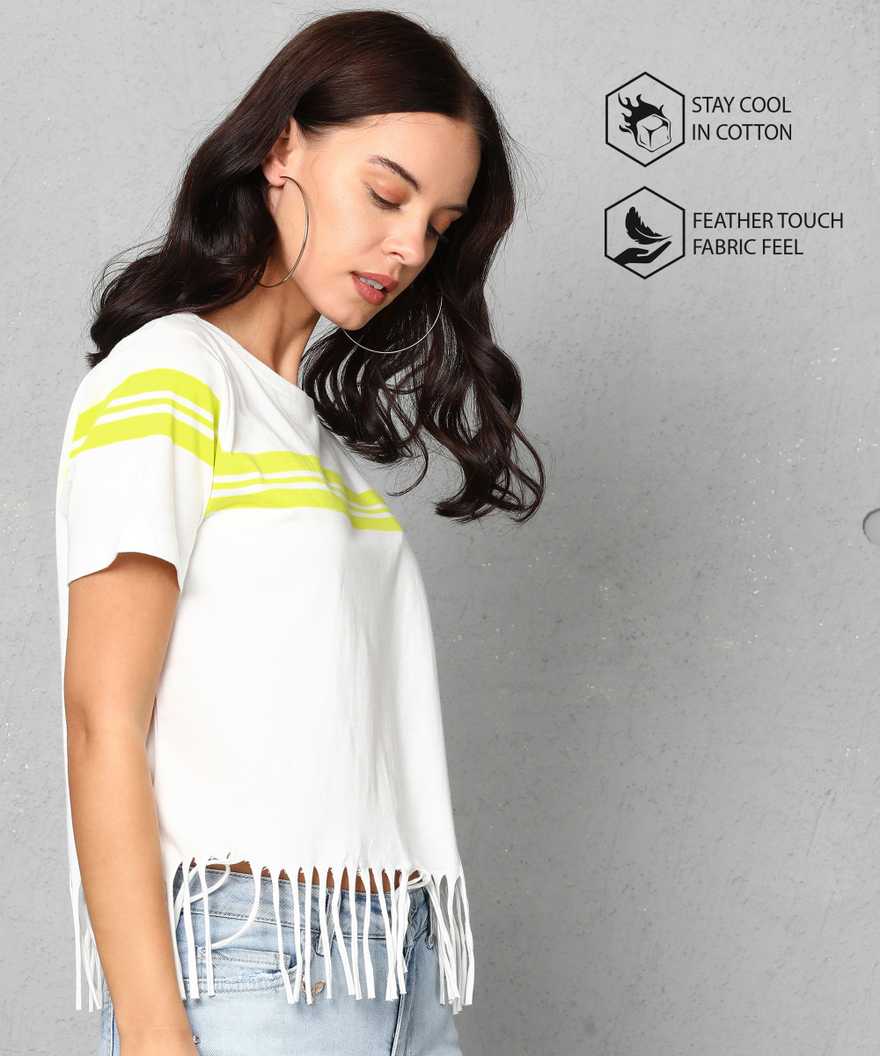 Casual Short Sleeve Striped Women White Top