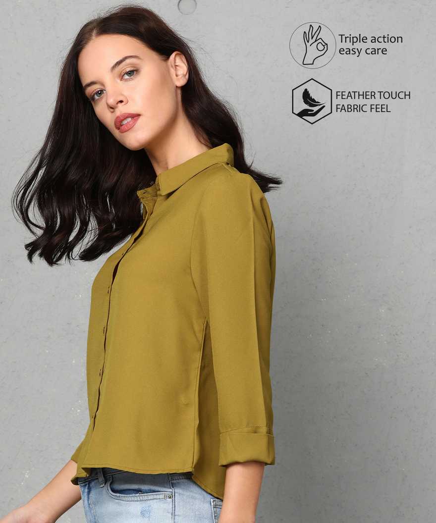 Casual Regular Sleeve Solid Women Yellow Top