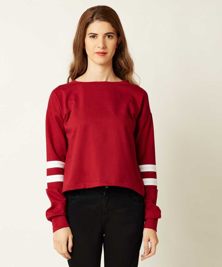 Casual Full Sleeve Solid Women Maroon, White Top