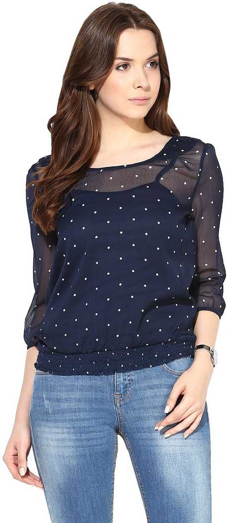 Casual 3/4 Sleeve Polka Print Women Blue, White Top