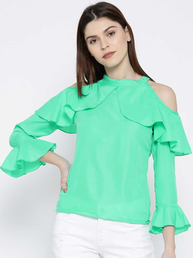Casual 3/4 Sleeve Solid Women Light Green Top