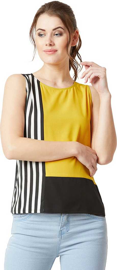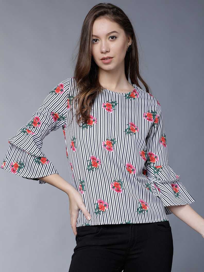 Casual Layered Sleeve Printed Women Dark Blue Top
